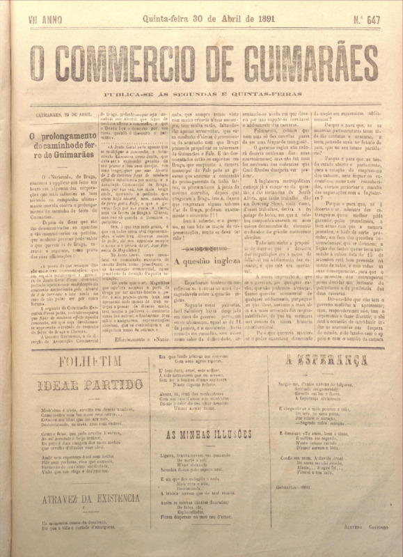 Comércio de Guimarães, nº 647, de 30/04/1891