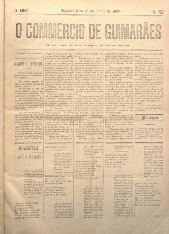 Comércio de Guimarães, nº 752, de 13/06/1892