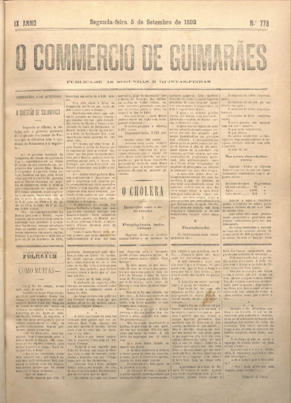 Comércio de Guimarães, nº 773, de 05/09/1892
