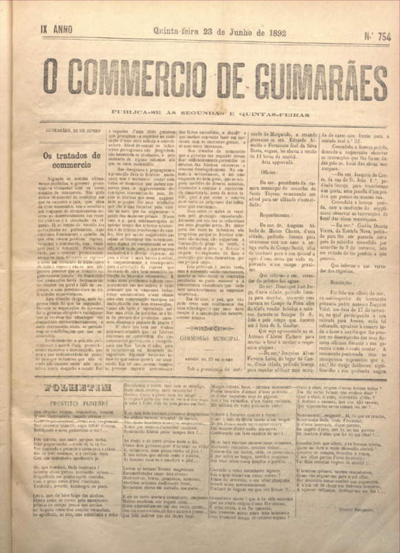 Comércio de Guimarães, nº 754, de 23/06/1892