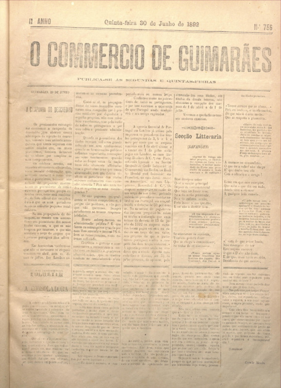 Comércio de Guimarães, nº 756, de 30/06/1892