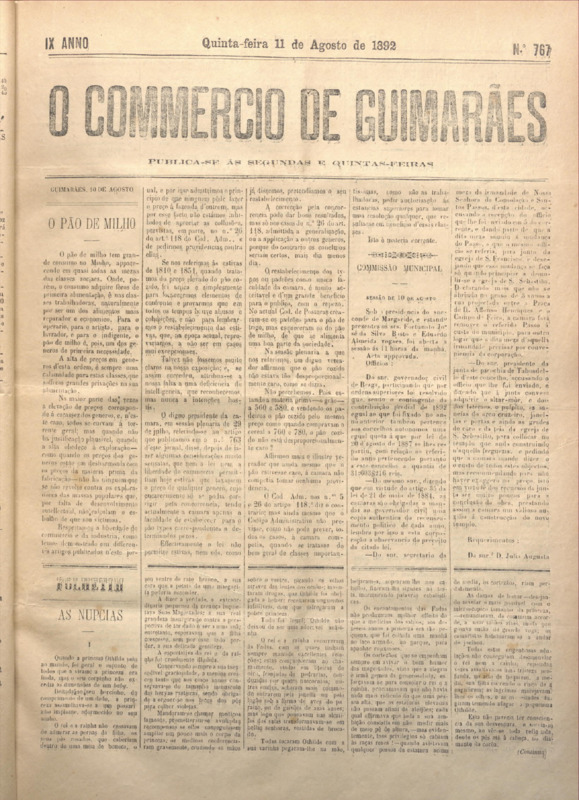 Comércio de Guimarães, nº 767, de 11/08/1892