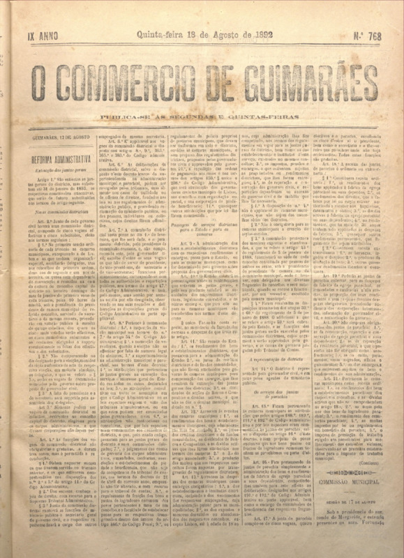 Comércio de Guimarães, nº 768, de 18/08/1892