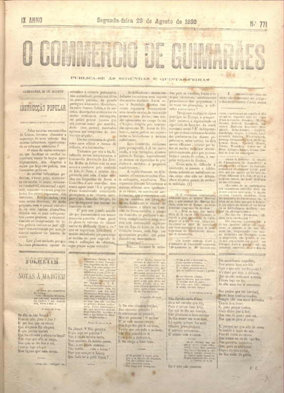 Comércio de Guimarães, nº 771, de 29/08/1892