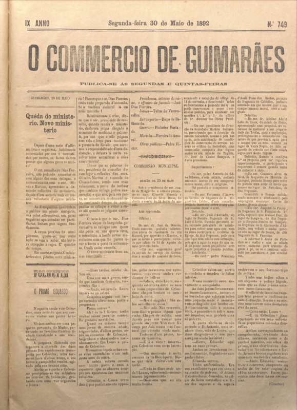 Comércio de Guimarães, nº 749, de 30/05/1892