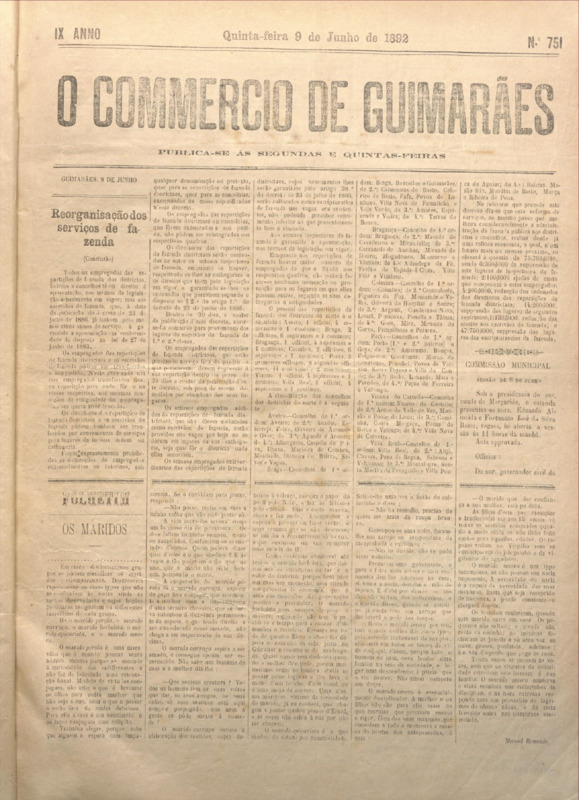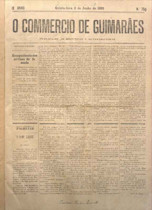 Comércio de Guimarães, nº 751, de 09/06/1892