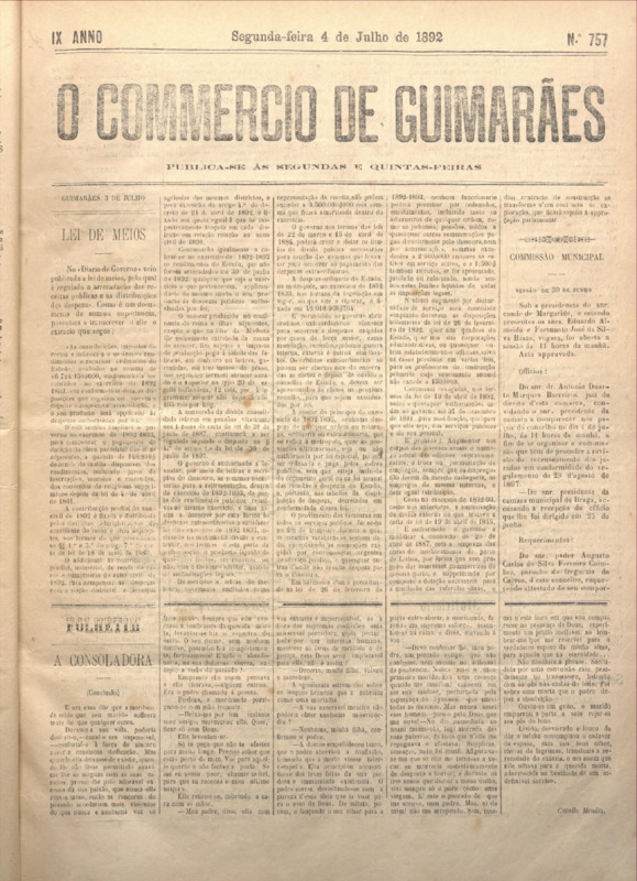 Comércio de Guimarães, nº 757, de 04/07/1892