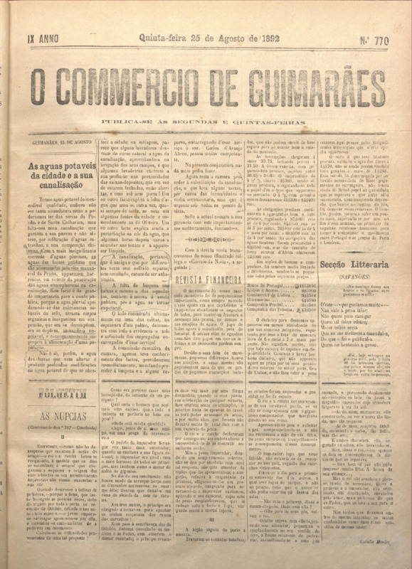 Comércio de Guimarães, nº 770, de 25/08/1892