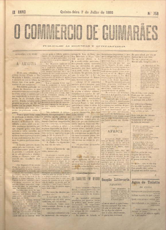 Comércio de Guimarães, nº 758, de 07/07/1892