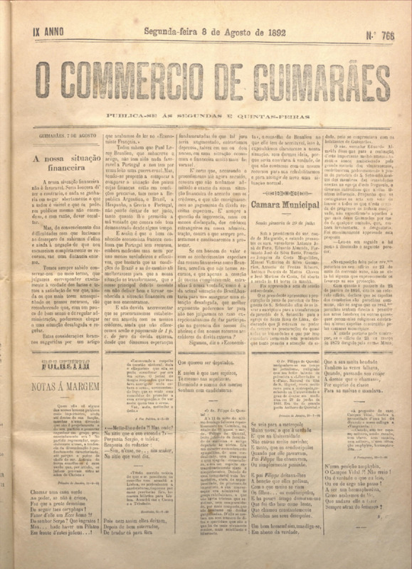 Comércio de Guimarães, nº 766, de 08/08/1892