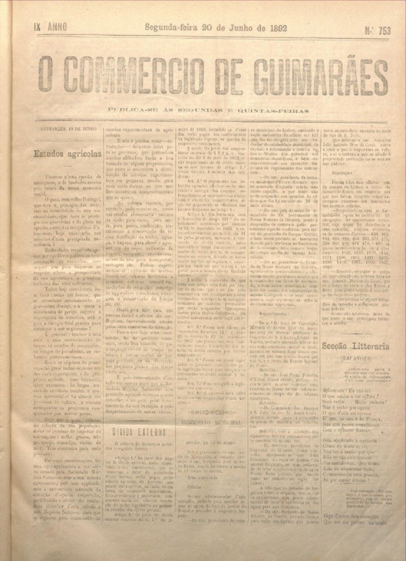 Comércio de Guimarães, nº 753, de 20/06/1892
