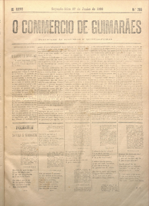 Comércio de Guimarães, nº 755, de 27/06/1892