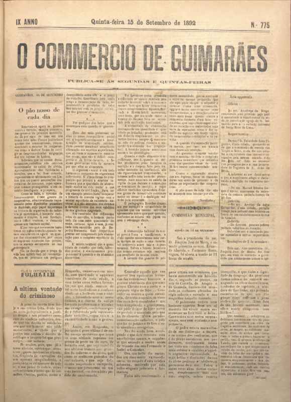 Comércio de Guimarães, nº 775, de 15/09/1892