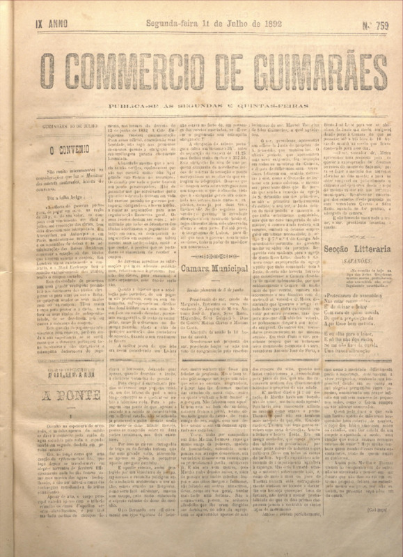 Comércio de Guimarães, nº 759, de 11/07/1892