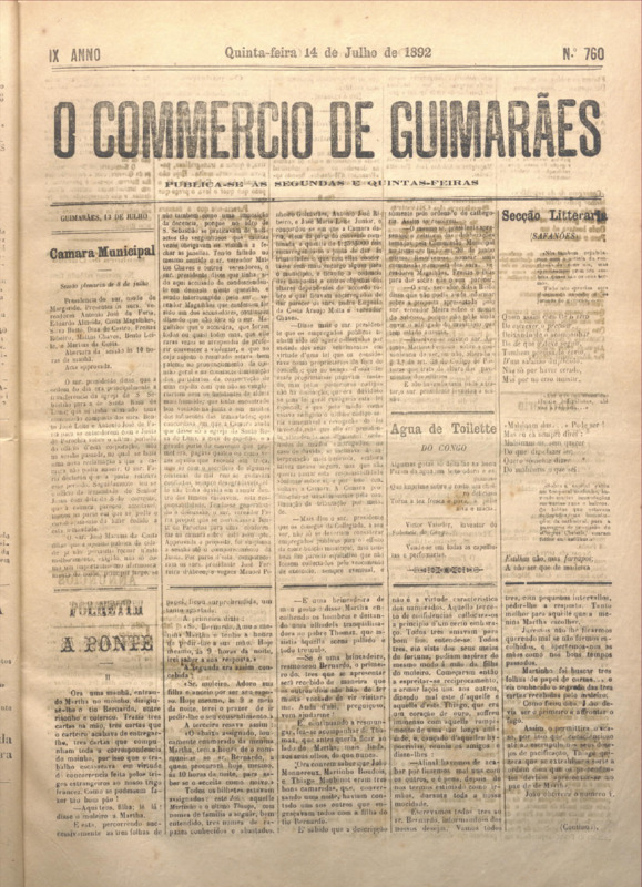 Comércio de Guimarães, nº 760, de 14/07/1892