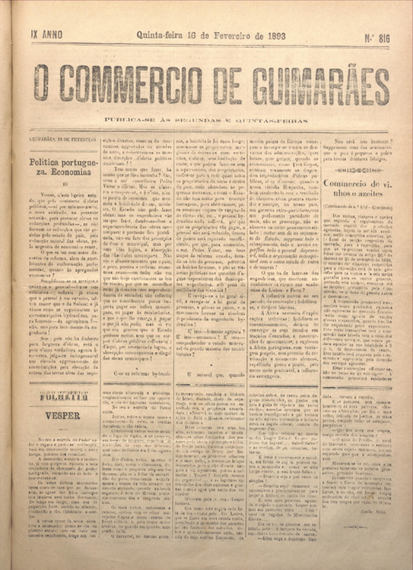 Comércio de Guimarães, nº 816, de 16/02/1893