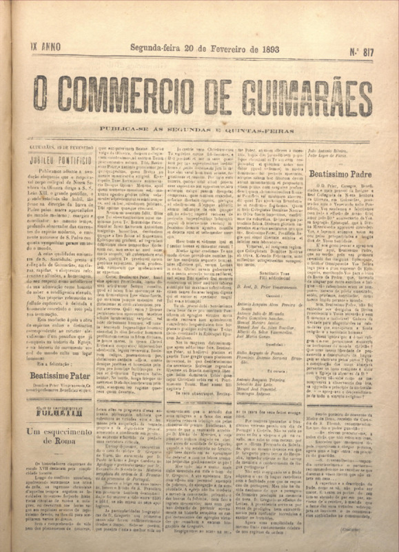Comércio de Guimarães, nº 817, de 20/02/1893