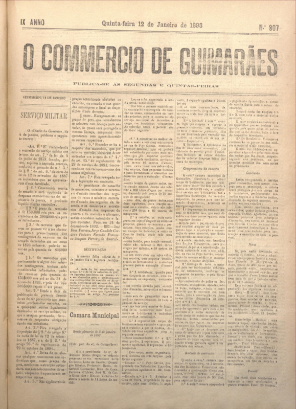 Comércio de Guimarães, nº 807, de 12/01/1893