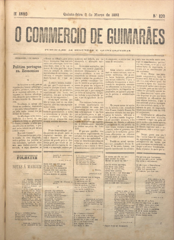 Comércio de Guimarães, nº 820, de 02/03/1893