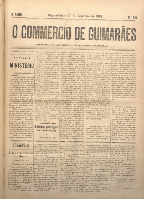 Comércio de Guimarães, nº 819, de 27/02/1893