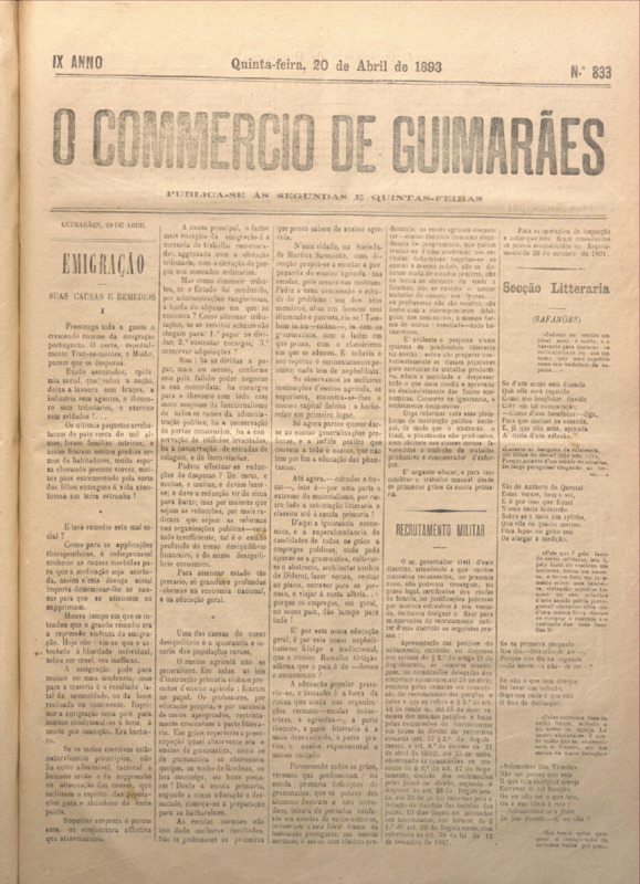 Comércio de Guimarães, nº 833, de 20/04/1893
