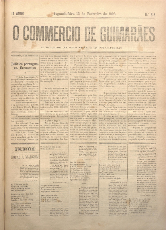 Comércio de Guimarães, nº 815, de 13/02/1893