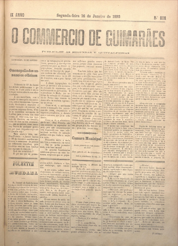 Comércio de Guimarães, nº 808, de 16/01/1893
