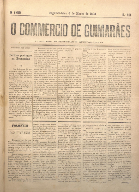 Comércio de Guimarães, nº 821, de 06/03/1893