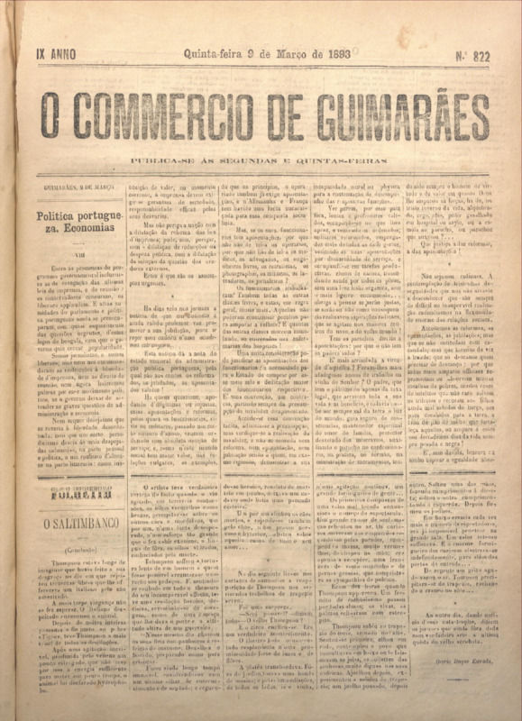 Comércio de Guimarães, nº 822, de 09/03/1893