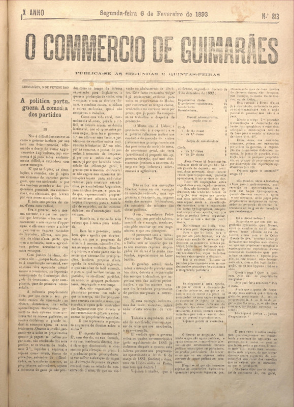 Comércio de Guimarães, nº 813, de 06/02/1893