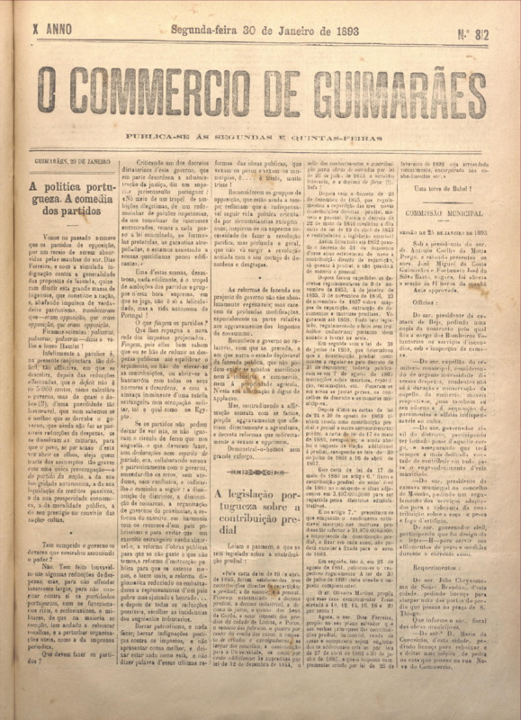 Comércio de Guimarães, nº 812, de 30/01/1893