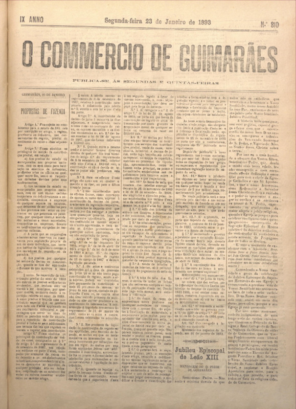 Comércio de Guimarães, nº 810, de 23/01/1893