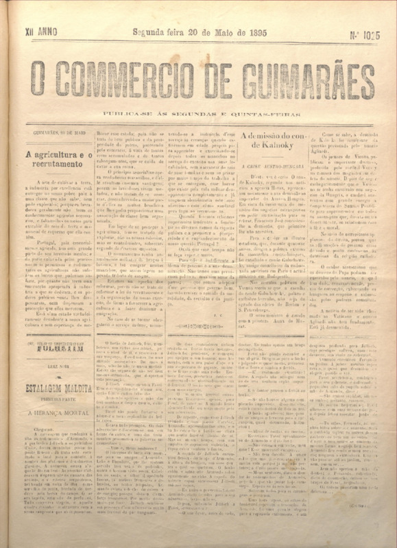 Comércio de Guimarães, nº 1025, de 20/05/1895