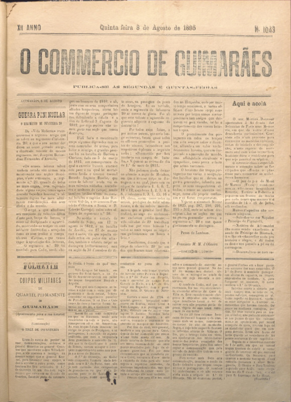 Comércio de Guimarães, nº 1043, de 08/08/1895