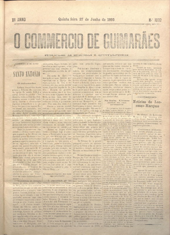 Comércio de Guimarães, nº 1032, de 27/06/1895