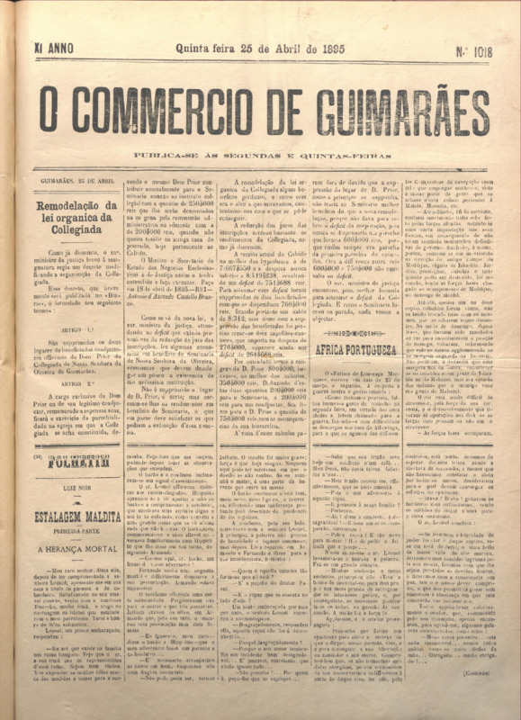 Comércio de Guimarães, nº 1018, de 25/04/1895
