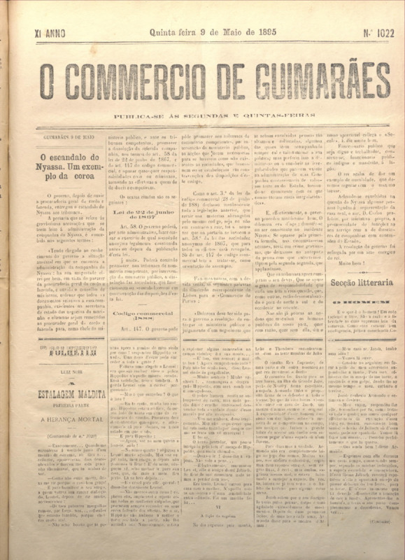 Comércio de Guimarães, nº 1022, de 09/05/1895