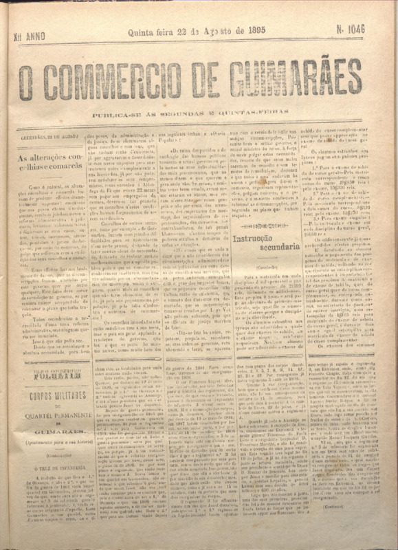 Comércio de Guimarães, nº 1046, de 22/08/1895