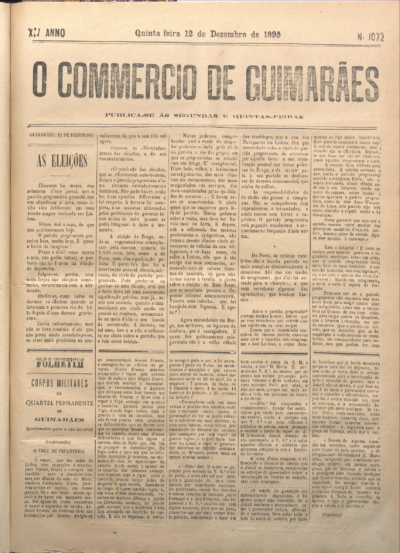 Comércio de Guimarães, nº 1072, de 12/12/1895