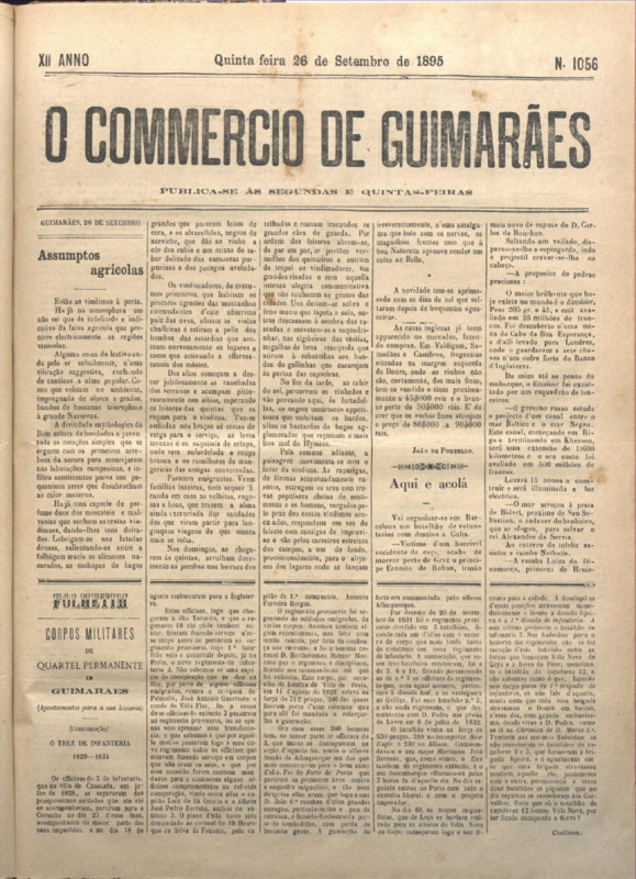 Comércio de Guimarães, nº 1056, de 26/09/1895
