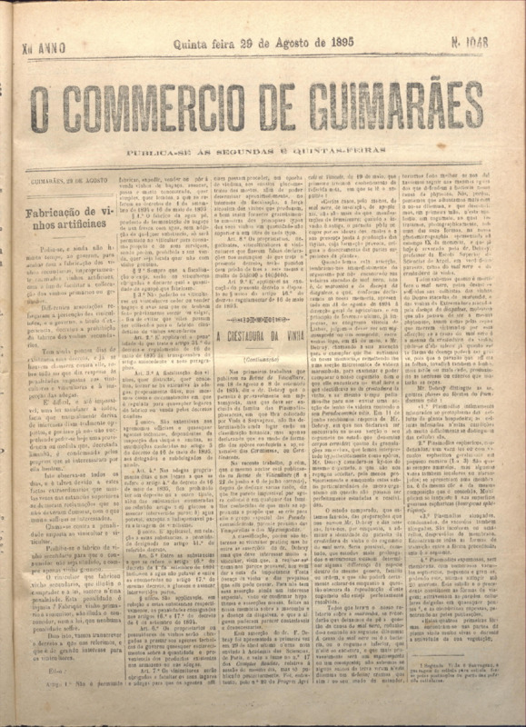 Comércio de Guimarães, nº 1048, de 29/08/1895