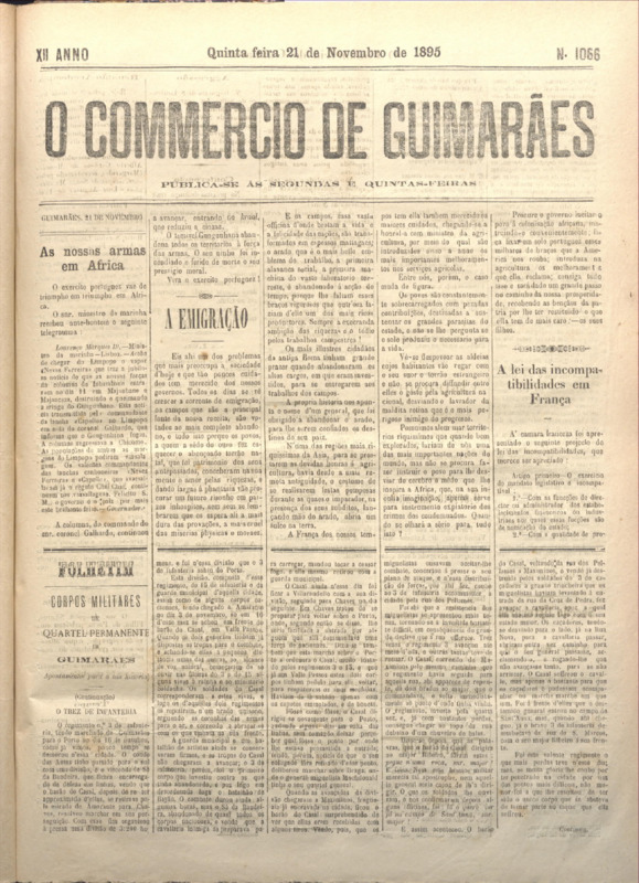 Comércio de Guimarães, nº 1066, de 21/11/1895