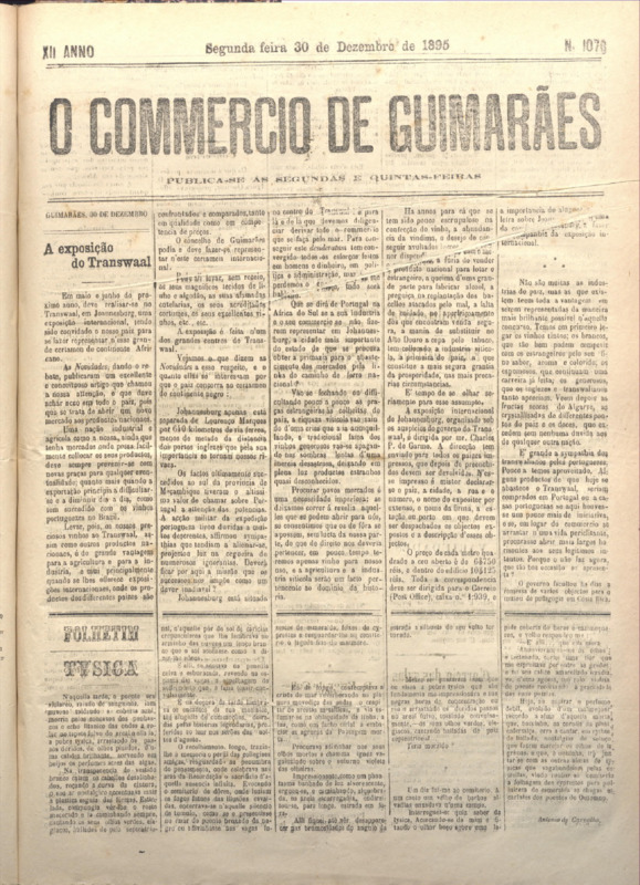 Comércio de Guimarães, nº 1076, de 30/12/1895