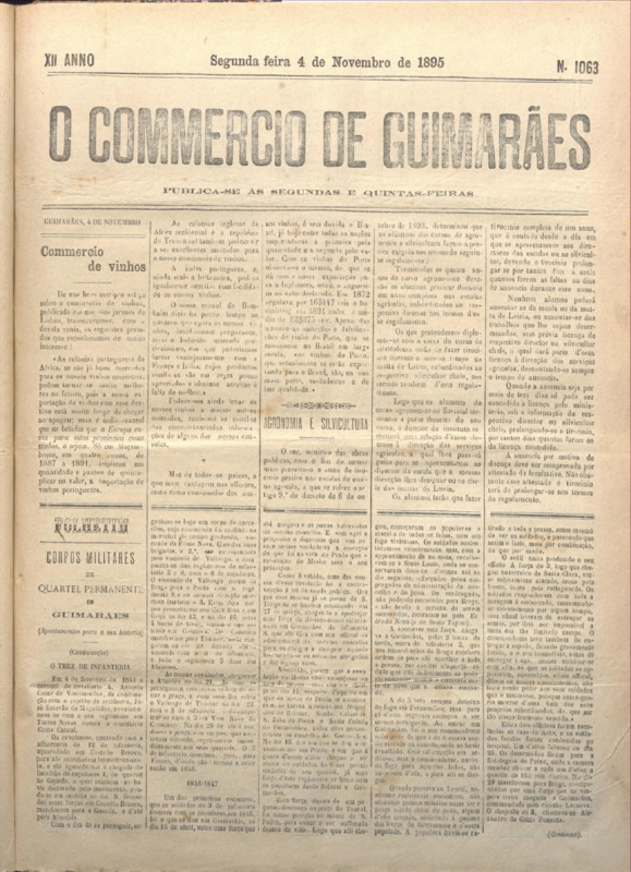 Comércio de Guimarães, nº 1063, de 04/11/1895
