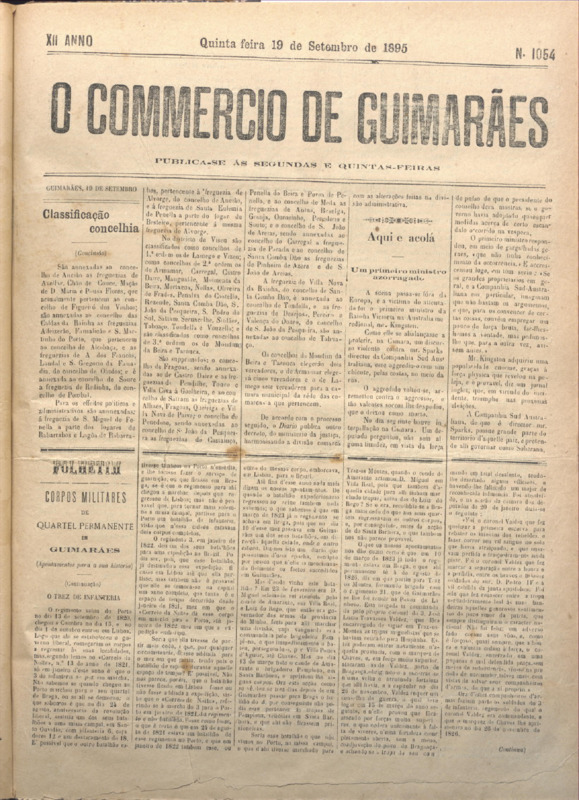 Comércio de Guimarães, nº 1054, de 19/09/1895