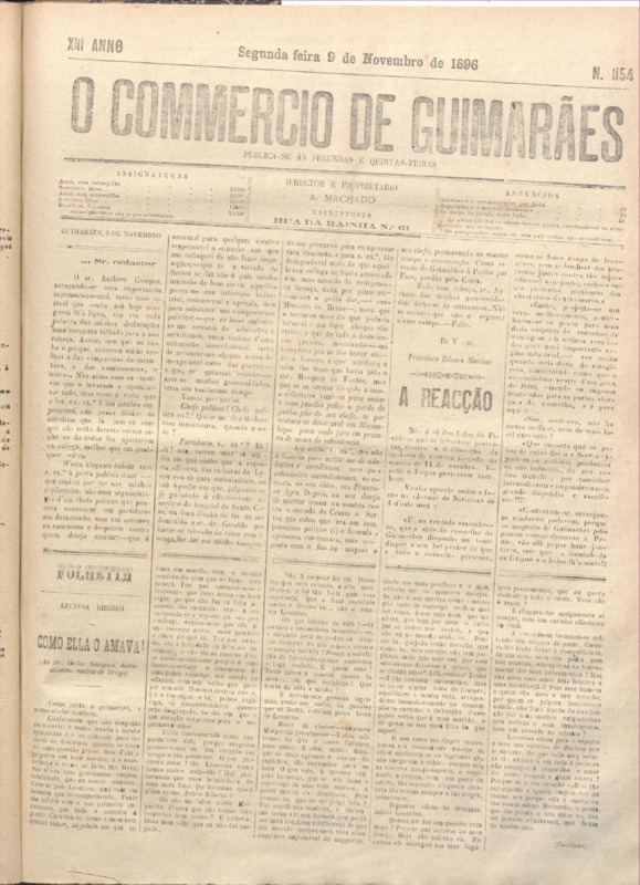 Comércio de Guimarães, nº 1154, de 09/11/1896