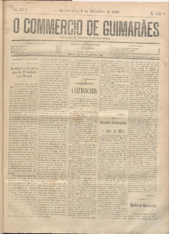 Comércio de Guimarães, nº 1138, de 03/09/1896