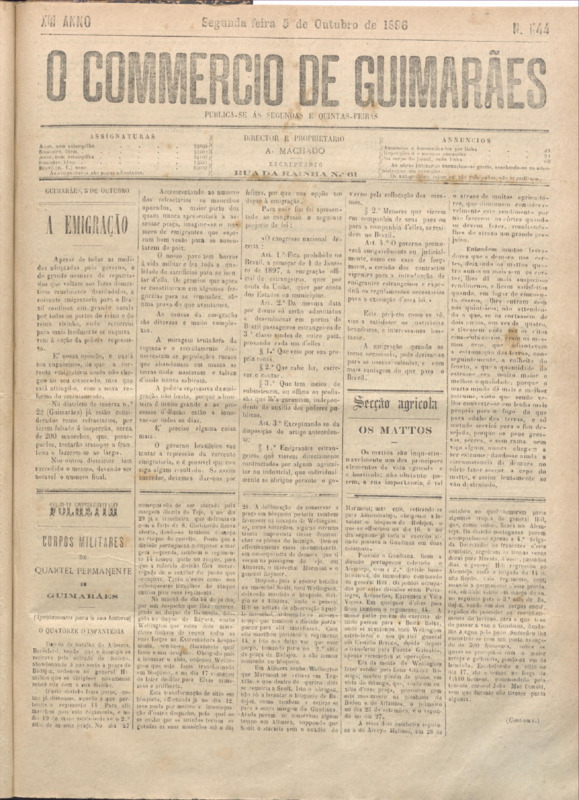 Comércio de Guimarães, nº 1144, de 05/10/1896