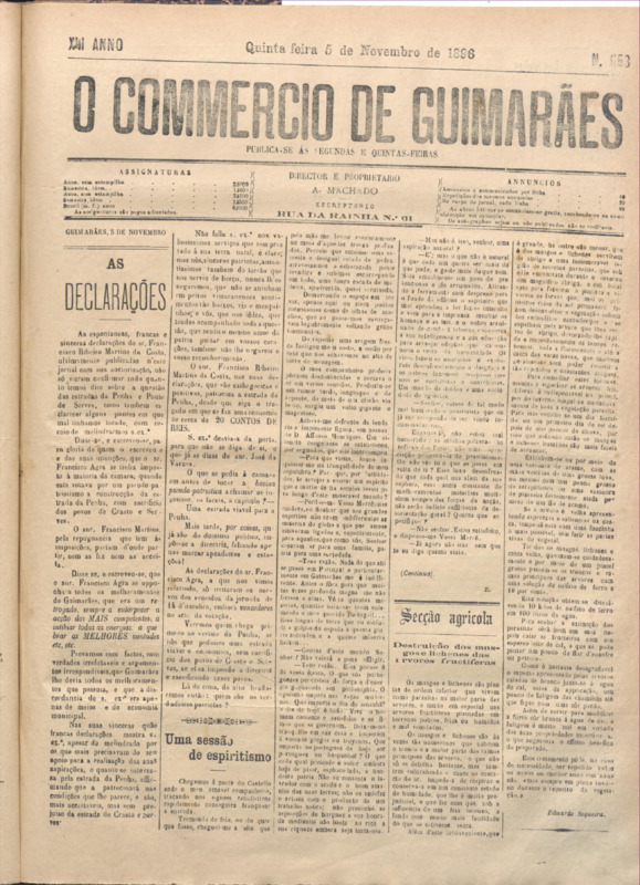 Comércio de Guimarães, nº 1153, de 05/11/1896