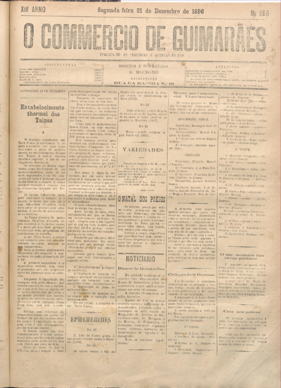Comércio de Guimarães, nº 1166, de 21/12/1896